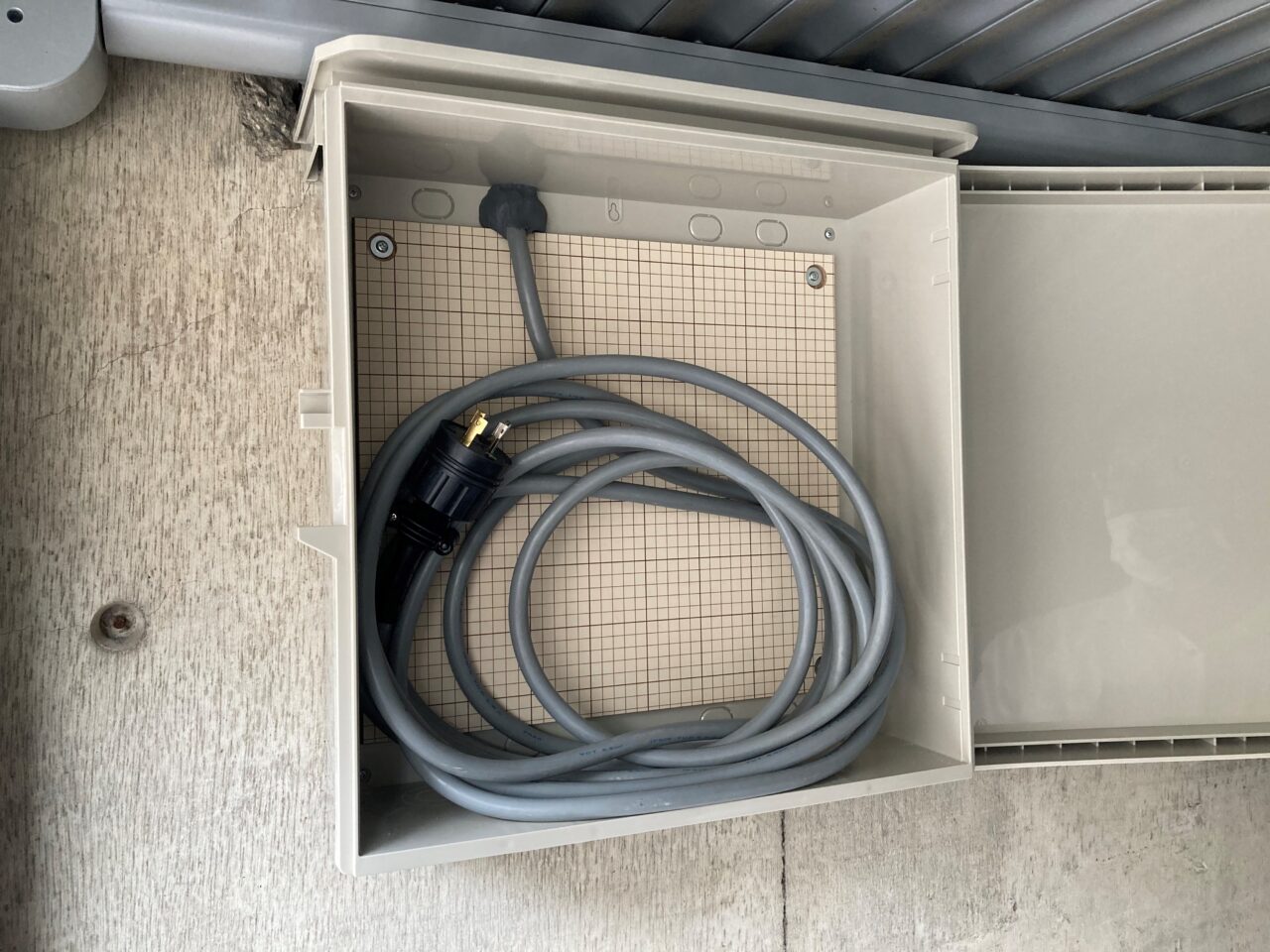 - ボックスの中に発電機用のガスホースを収納。同時に別のガス栓からコンロやガスストーブにもガスが供給可能